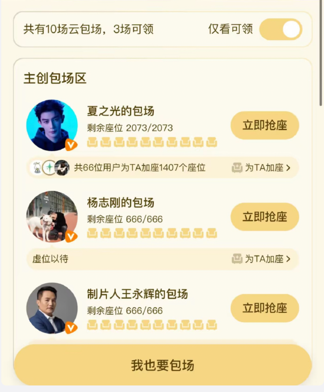一开始,主要是剧集主演或幕后主创参与包场,是平台联合剧方送福利的一种手段。然而,随着几部流量演员主演的剧集的播出,粉丝纷纷加入包场行动中。云包场在平台的操作中也逐渐变了味道,成了一种“催氪”的手段,尤其是在一些冲热度值的关键节点。