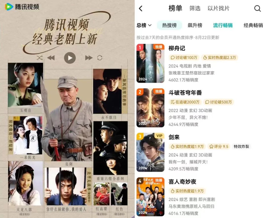 不久之前,腾讯集团发布了2024年二季度财报,其中长视频业务表现亮眼,在多部热门剧集的带动之下,付费会员数同比增长13%至1.17亿。截至目前,在腾讯视频经典畅销榜单TOP 20(拉新榜)中,2024年的新剧已经占到了7部,这意味着今年的种种举措正在初步见到成效。