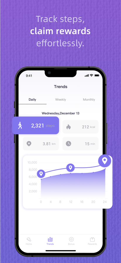 下载后,仅需在前7天连续登录便可获得相应能量,且对领取时间不设限制,在一天内的任意时间都可以领取。而为了增强信任度,当每天步数达到一定量时,便会触发阶段性奖励。在过程和结果上,WalkWork显然是更注重过程。