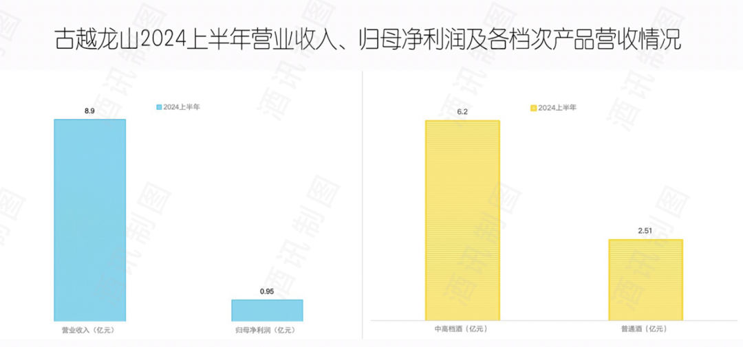 8月16日,古越龙山发布上半年财报。2024年上半年,公司实现营业收入8.9亿元,同比增长12.83%;归母净利润0.95亿元,同比增长5.36%。全部营收按产品档次分类,中高档酒实现营收6.20亿元,同比增长14.17%;普通酒实现营收2.51亿元,同比增长15.56%。