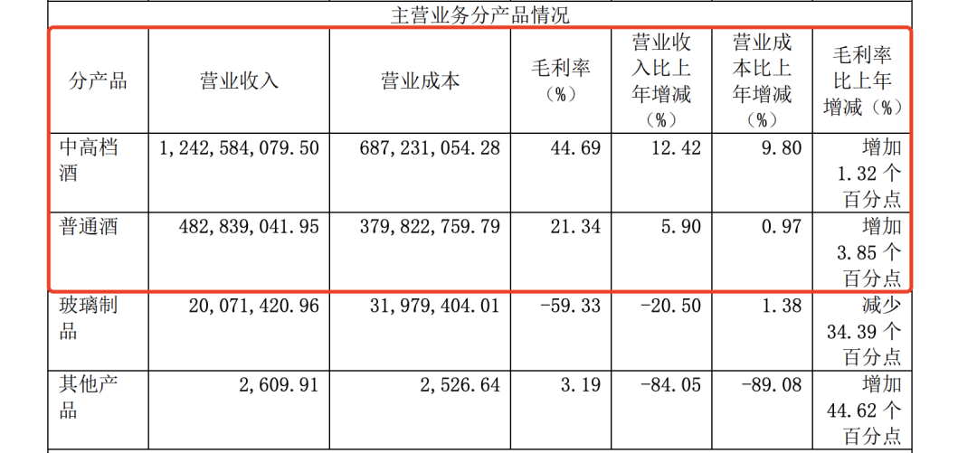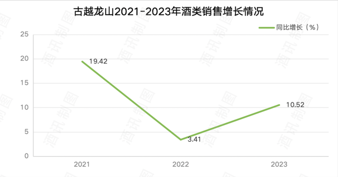 从结果来看,古越龙山仍处于低端市场。2023年财报显示,其普通酒的销量占总销量的60%以上,中高档酒销量则不及总体的40%,中高档酒的销量增速也远低于普通酒。中高档酒产品销量增速为7.16%,普通酒的销量增速为14.52%,拉开了一倍的差距。