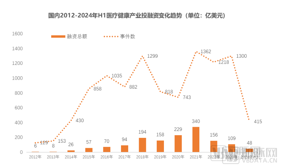 图3.2012-2024年H1医疗健康产业投融资变化趋势(数据来源:动脉橙)