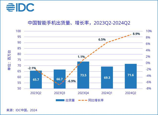 IDC发布的《全球手机季度跟踪报告》显示,2023年全球智能手机出货量同比下降3.2%至11.7亿部,这是十年来最低的全年出货量。