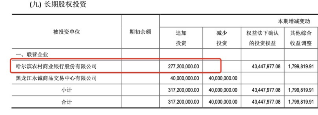 此外,永诚保险还向哈尔滨农商行派出董事一名,在董事会拥有表决权,对该行具有重大影响。