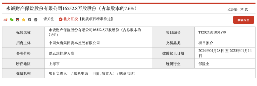 具体来看,2021年9月,中国大唐集团资本控股有限公司(以下简称“大唐资本”)挂牌转让其持有的永诚保险7.6%的股权;今年4月,大唐资本再次拟转让该笔股权,披露日为2024年4月28日至2025年1月14日。