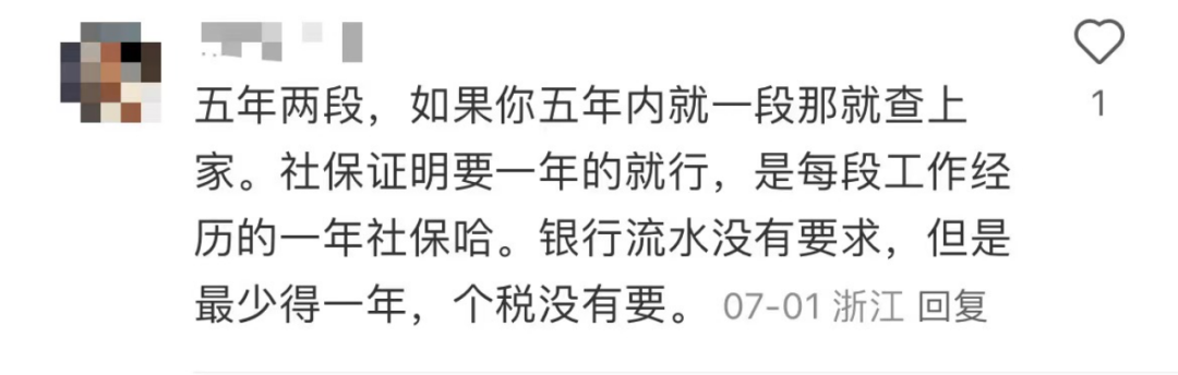 5年两段,每段经历一年社保,至少提供一年银行流水…