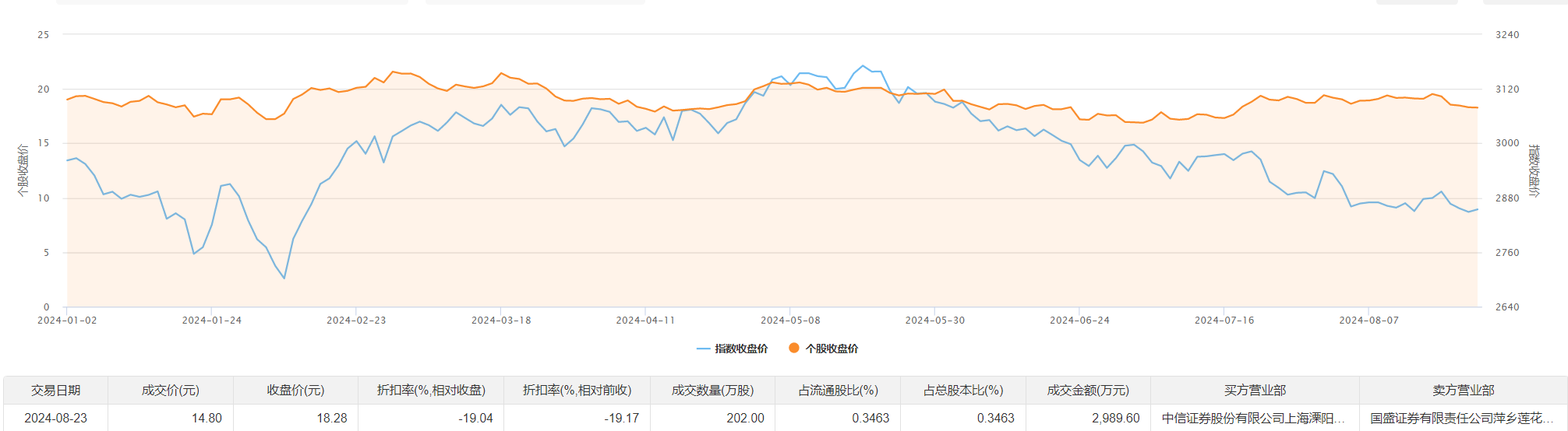 圣湘生物8月23日大宗交易成交202万股,成交额2989.6万元,占当日总成交额的41.95%,成交价14.8元,较市场收盘价18.28元折价19.04%。