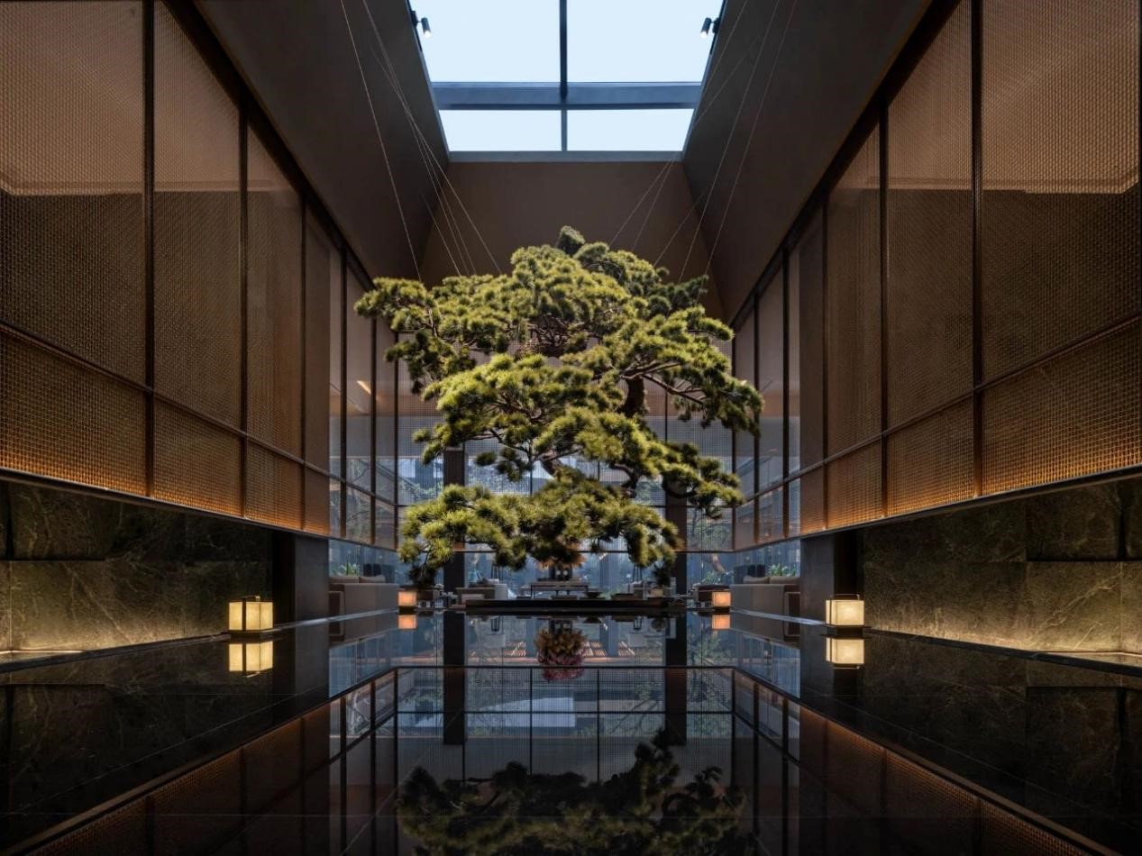 在I期酒店式社区之上,持续系统性深入研究精奢度假酒店场景,匹配主城高端改善居住的升级点,将酒店美学与度假体验深度融入社区设计之中,带来全新的主城低密院落式度假生活场——通过一核两轴六园一街的景观场景规划,将奢华感的酒店规制、松弛感的度假氛围、自然感的浮岛水岸风情贯穿日常生活,在车水马龙的都市之中,创造一种舒适而放松的生活情景, 让度假场景真正融于社区生活,回归自然本真。