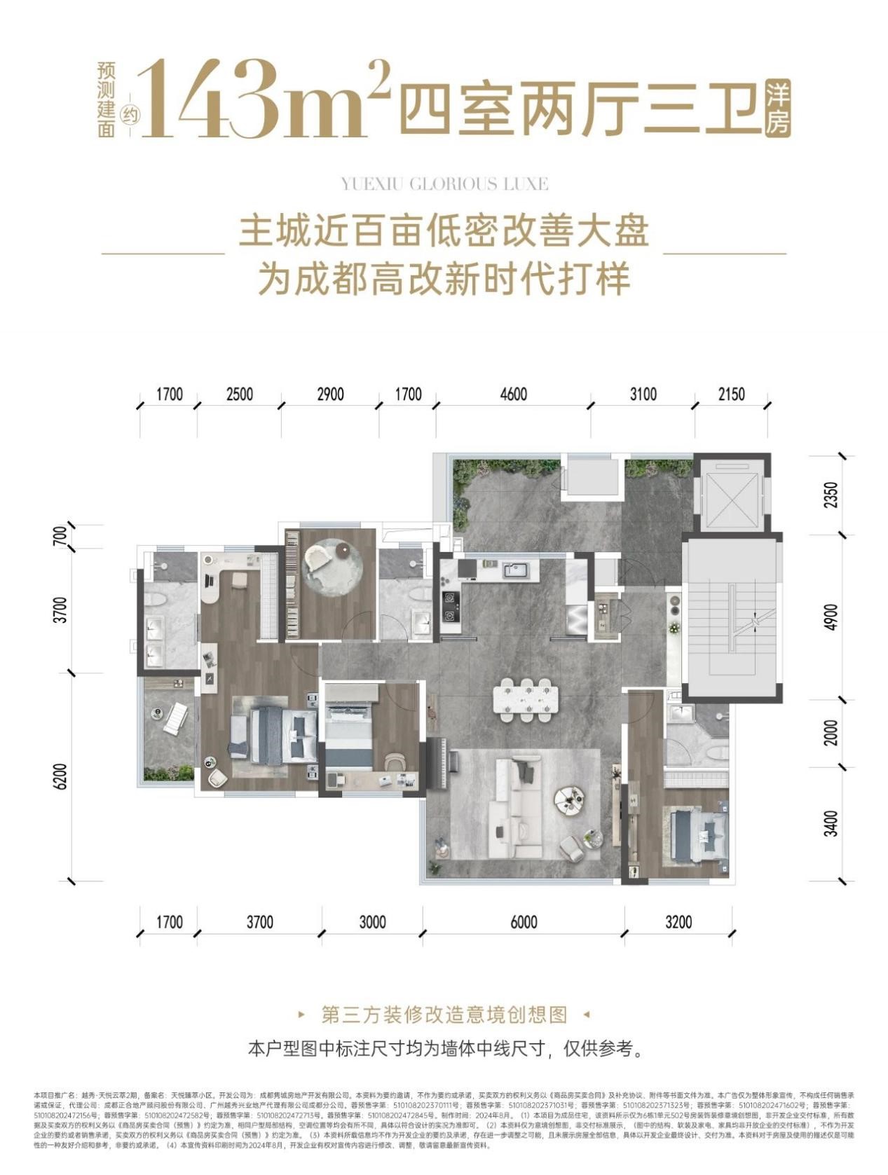 天悦云萃Ⅱ期承续一期红盘实力,以领先市场的魄力成就成都城市新规下的首秀产品,构建更多元化的空间场景,在此新规下,构建建面约120-143㎡的洋房及小高,再创住宅超高实得面积。