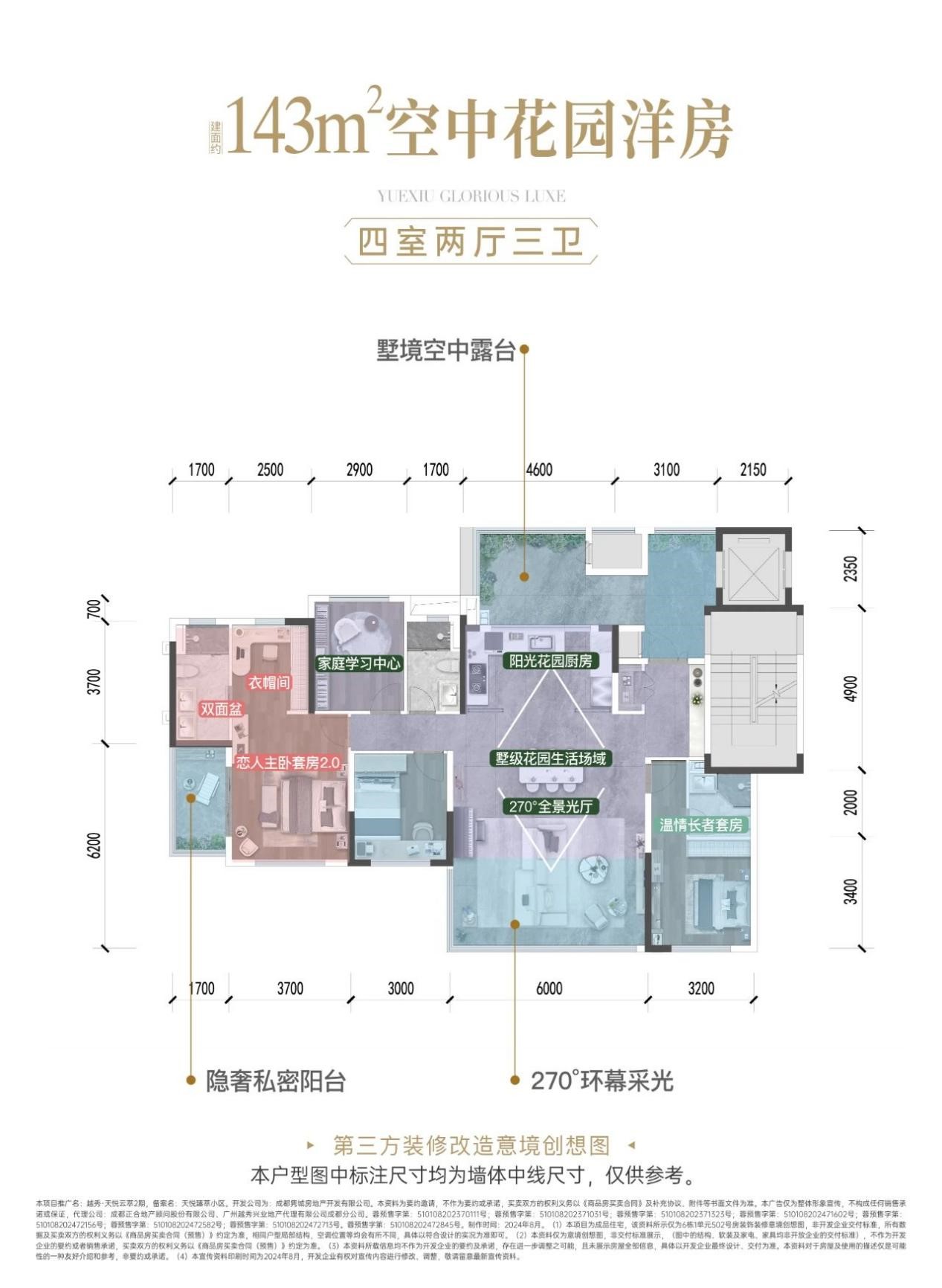 越秀洞悉空间与生活的关联,精研当代家庭居住习惯和诉求变化,从舒适改善和高定私享两大新时代居住主张出发,以“别墅平层化”理念打造划时代王炸新品——建面约143㎡空中花园洋房,实现了主城难得一见的7层洋房业态,业主既可享受别墅的花园生活场景,又能享受大平层的空间尺度。