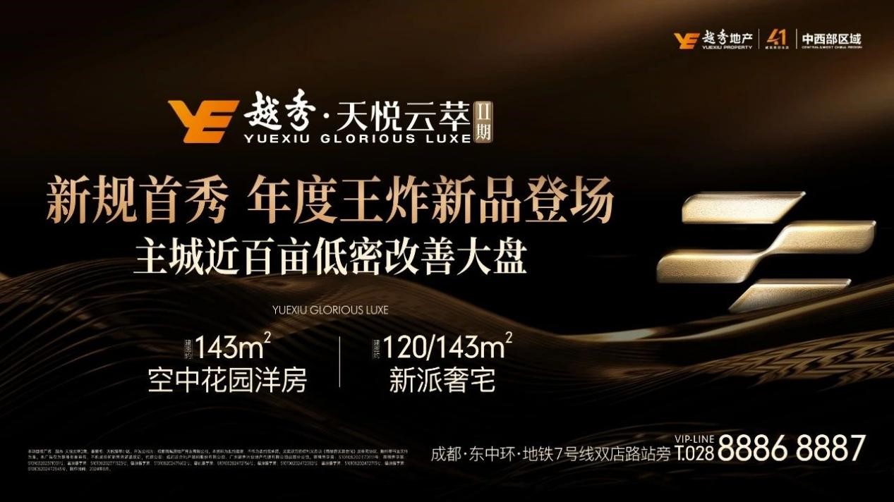 自1992年上市,越秀地产始终以城市共建者之姿,持续深耕城市更新,致力成为城市美好生活创领者,打造了【天】系、【樾】系等高端改善产品,在成都又因“越秀·天悦云萃”“越秀·望悦”一炮而红。作为越秀地产入驻城东的首作,天悦云萃创领性提出以星级酒店式手法高定城东生活。同时以3大领先力不断刷新主城改善标杆,领先成都。