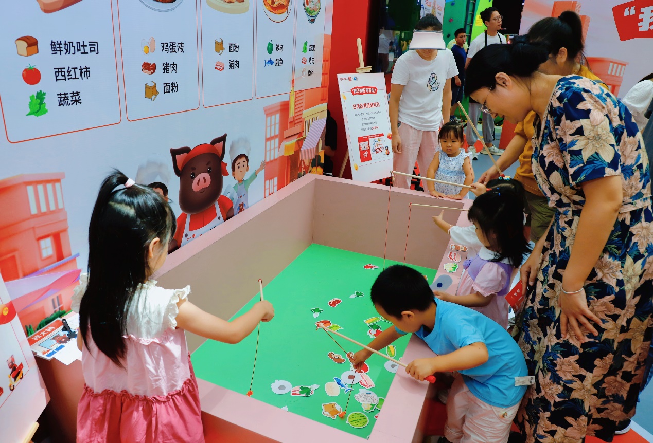 活动期间,现场气氛就如同会场的主题色钱大妈“红”一样热烈。钱大妈的人气IP黑毛小猪也惊喜亮相,与参与活动的家长和小朋友们亲切互动、合影留念。孩子们在家长的耐心陪同下,认真地完成各个游戏,每通过一个游戏关卡,就会获得一枚印章。当完成了所有的“闯关打卡”,集齐摊位印章,即可参与抽奖,将12000元的“开饭基金”、预付卡、空气炸锅等惊喜大礼赢回家。不仅从中收获食育知识,体会到亲自动手完成一件事的成就感与自信心,更在无形中体会到了劳动的乐趣和价值。