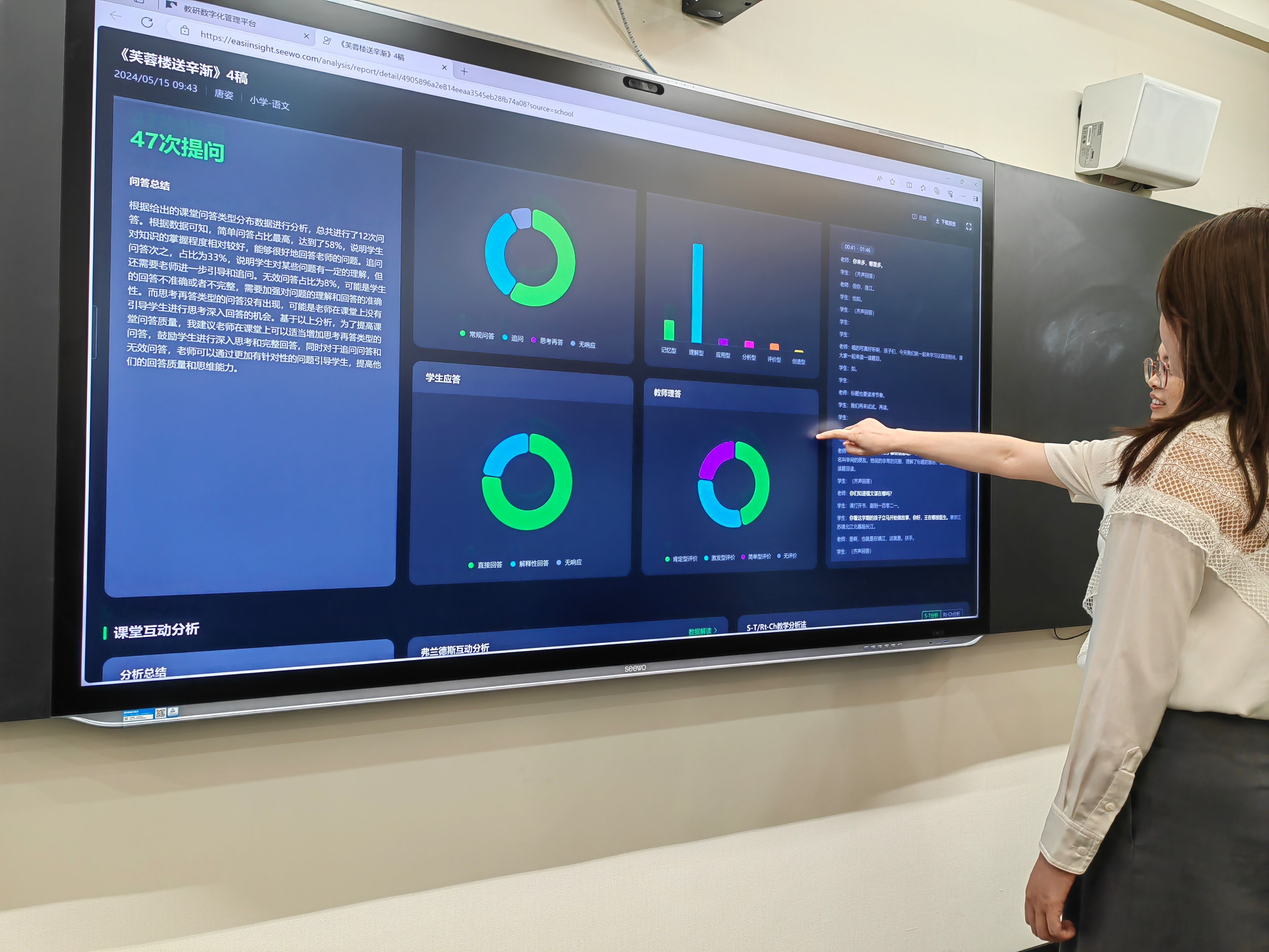 在“人工智能+教育”的推进中,希沃积累了众多应用成效。在湖南省湘潭市九华和平小学及周边学校,基于希沃教学大模型,将人工智能技术应用于课堂教学活动当中,构建“人工智能智能反馈”的新型教学反馈机制,能让教师的课程有数据依据,延展新的教学启发。在四川省宜宾市翠屏区,“人工智能+教育”的创新探索也在持续深入落地,希沃课堂智能反馈系统目前已在翠屏区凉水井实验学校、宜宾六中鲁能校区、宜宾市第八中学等学校深度应用,赋能教师发展和学生学习。