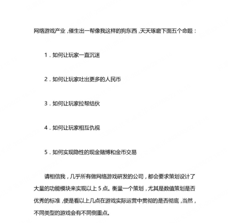 “网络游戏产业,催生了一帮像我这样的狗东西,天天琢磨下面五个命题: