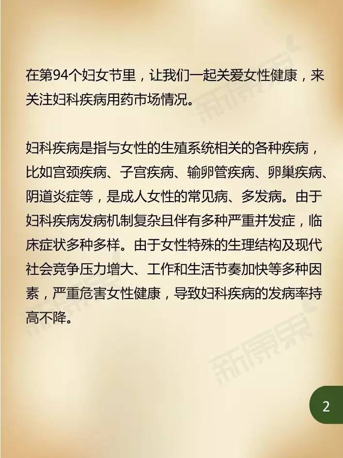 在我国第94个妇女节到来之际,让我们一起关爱女性健康,来关注妇科疾病用药市场情况。