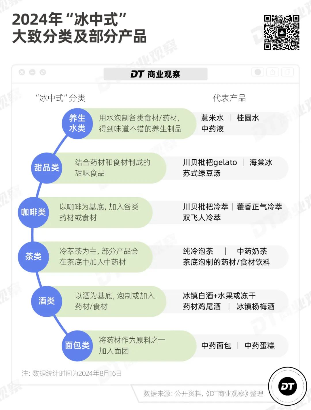 来自糖水铺、面包店甚至医院药房的中药奶茶、药材冰淇淋;加了中药材或者传统的养生食材的各种饮品;甚至,藿香正气水、川贝枇杷膏也都成了“冰中式”的原材料之一。