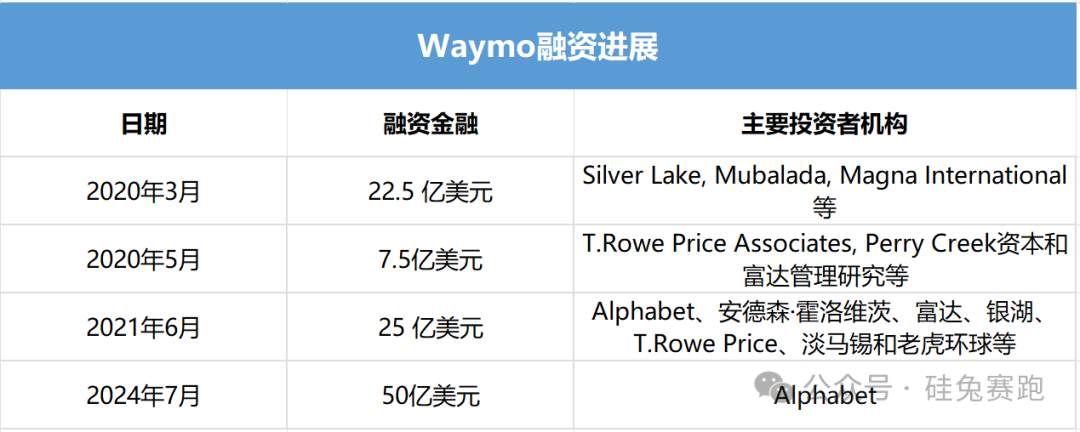 Waymo在短短五年内累计融资超过100亿美元。