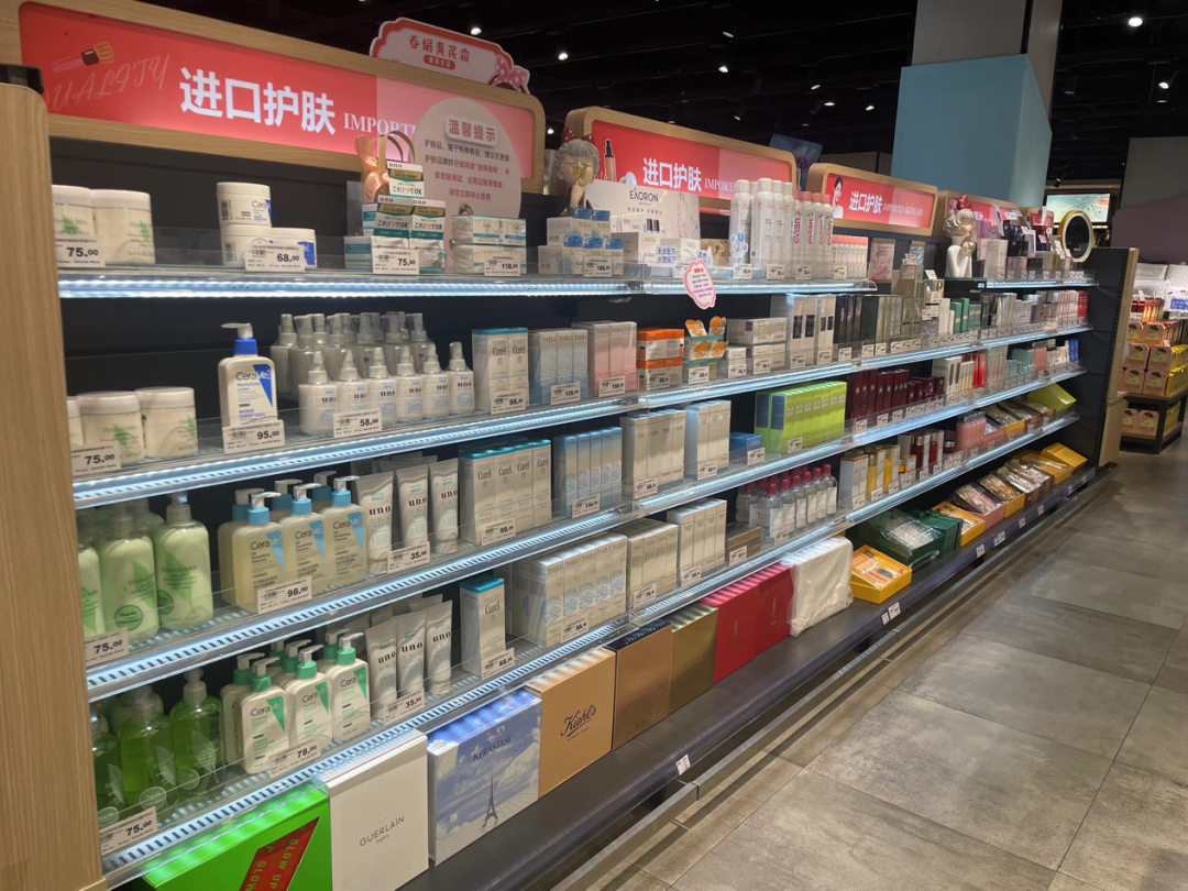 近日,《化妆品观察》走访了胖东来新门徒,有着“武汉版胖东来”之称的中百仓储关山光谷店。尽管模仿痕迹明显,但也有别于胖东来的不同之处:超市入口处即日化区,进门第一眼即进口美妆爆品堆头,以及赫莲娜、海蓝之谜等从未在超市业态中出现过的高奢品牌。