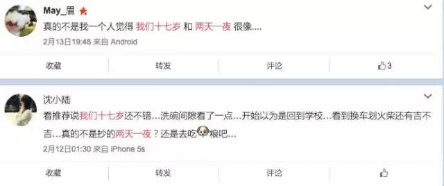 而《我们十七岁》最被网友吐槽的是“吉不吉”环节,被指照搬了韩国《两天一夜》中的“福不福”,只因为《我们十七岁》的金主是“王老吉”。从划火柴选择飞机还是自驾,到电话联络“求你快点说”,再到“记忆传递”……大体通过“吉不吉”的二选一游戏左右走向。也就是说,“吉不吉”这个游戏,比如午饭吉不吉,就是看你是不是有运气可以赢得游戏取得吃午饭的机会。