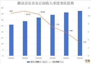 然而,在这一背景下,腾讯音乐一季度音乐订阅收入却再次出现了环比增幅收窄,从2023年四季度的7.2%下跌至5.8%,到了二季度又下滑至3.31%。另一边,二季度在线音乐单付费用户月均收入虽同比大增,但并没有书写腾讯音乐的新历史,数据与2023年四季度持平,环比上也只是微弱增长了0.94%。