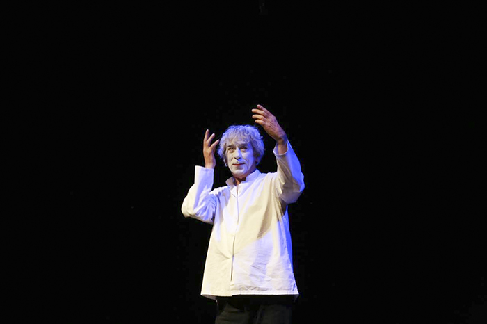 话题回到观众与表演者的关系上,比佐表示,在他的表演里,他从不要求自己一定传递给观众某种特定的观点或思考,他认为自己的表演不是说教,而是在分享。“还是那句话,我表达的是我的生活、时间、死亡等等,这其实是非常私人化、自由化的。”比佐期望在剧场的每个观众都可以看到不同,“每个人接受我的表演的是内在的,我只能从他们的面目表情来看。当我表演的时候,我既然是演员又是观众。这是一种特别的沟通。”