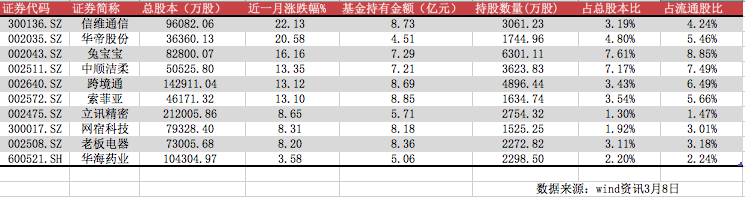 近一个月旗下重仓股集中爆发。10只股票全部实现正收益,平均收益12.7%。其中信维通信(300136.SZ)和华帝股份(002035.SZ)涨幅超过20%。