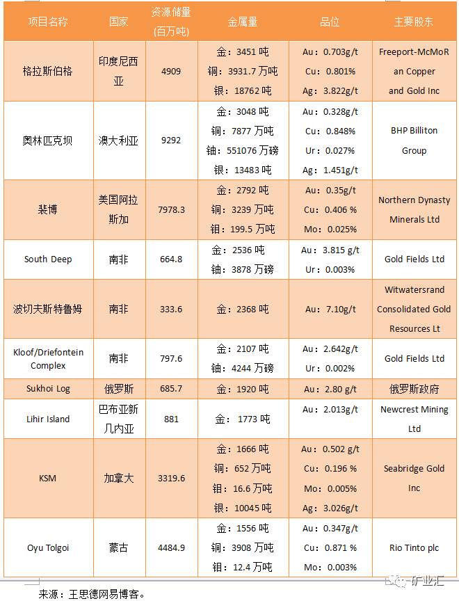 这个排名就是以金矿中的黄金金属量进行排名的,也是最常见的金矿排名方式。
