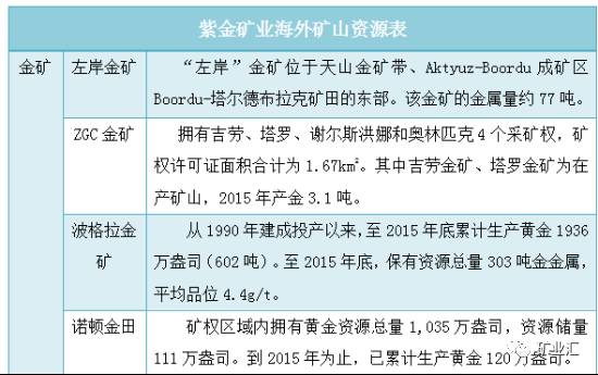 以紫金为例,在海外共拥有矿山9座,主要以金矿、铜矿、铅锌矿为主,金属资源总量超过资金矿业资源总量的1/3;其中金产量占紫金矿业的总量超过1/3。