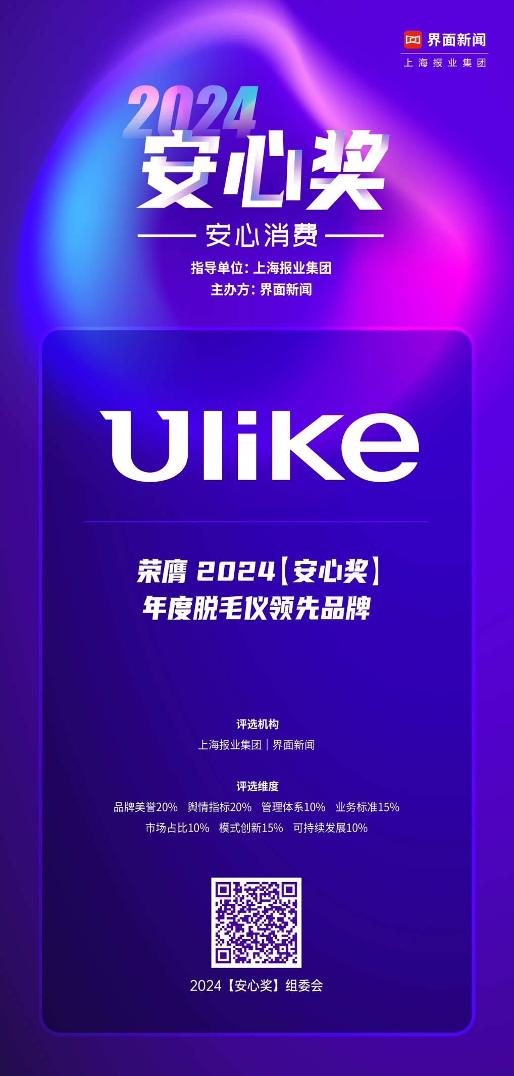 Ulike当之无愧荣获【2024安心奖】年度脱毛仪领先品牌。