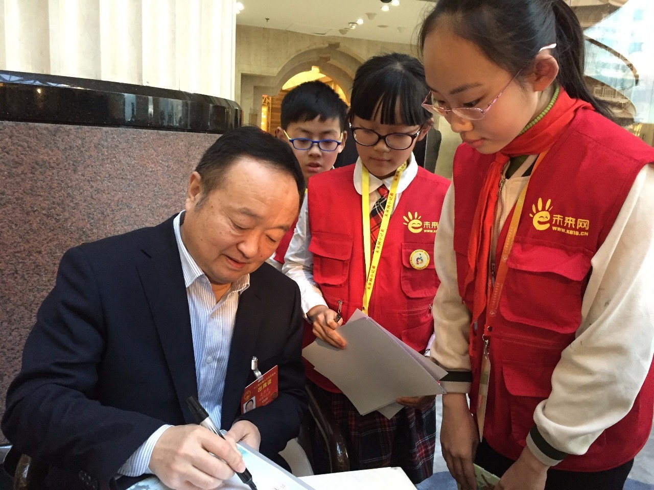 (采访开始前,姜卫东代表为未来网小记者写下寄语)