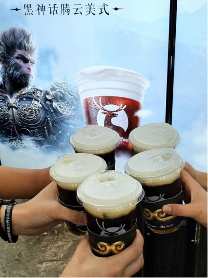 除了开拓市场的速度,星巴克在产品创新、营销声量上也处于落后的状态。瑞幸的生椰拿铁、酱香拿铁,以及最近与《黑神话:悟空》联名的腾云美式,都是经常断销的大爆款。库迪也一直紧跟瑞幸加快上新速度。