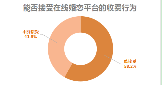 婚恋网站通过付费会员的模式产生更明确的盈利行为,用户付费后可以享受更多交友功能。58.2%的用户表示愿意接受在线婚恋平台的收费行为,期望通过付费得到高质量、高效率的婚恋交友服务;另外还有41.8%的用户不能接受付费行为。一方面,在线婚恋用户90后占很大一部分,在晚婚的趋势下,对于婚恋交友大多还停留在感兴趣但不迫切需要的阶段;另一方面,在线社交的虚拟性质让部分用户缺乏信任感,因此不愿意支付太多社交成本。