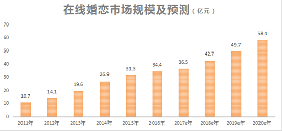 在线婚恋市场规模以平均20.9%的增速持续增长