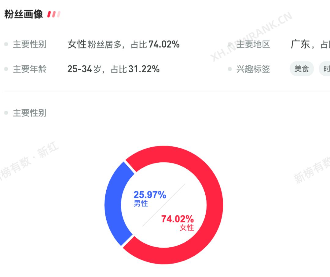 据新红数据,雷军的小红书账号女性粉丝居多,占比74.02%,成功圈粉女性用户,实现用户与产品的精准对接。
