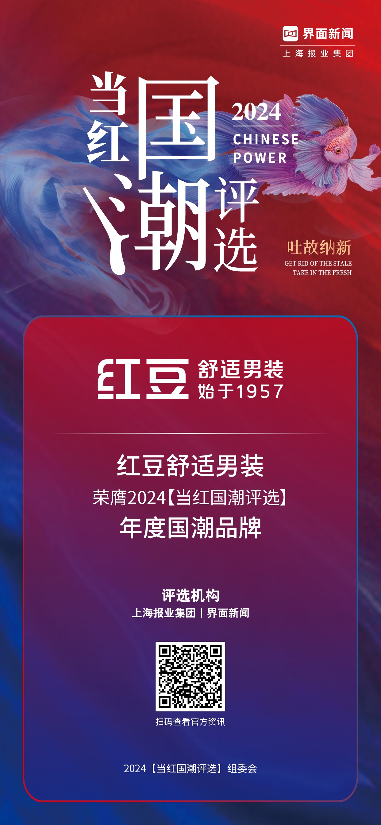 8月29日,上海报业集团|界面新闻主办的2024【新消费盛典】,正式公布了本届【当红国潮评选】获奖品牌。本次评选聚焦当红国潮品牌中彰显的中式美学多样的创新可能,通过表彰寻得激活古老文明生命力,重焕崭新光芒之有道良方。经过为期4个月的角逐,最终决出20家终榜得主。红豆舒适男装凭借创新的设计理念和品牌定位荣获2024【当红国潮评选】年度国潮品牌。