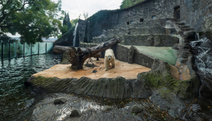 这组名为《白熊计划》的照片16张取景于欧洲,10张取景于中国。为了寻找北极熊,罗晟文跑遍了动物园,水族馆,野生动物园,甚至商场。虽然罗晟文并不想把北极熊拟人化,但在他的镜头下,北极熊不仅常常被困在狭小的空间内,生活条件也很不如意,让他们自然而然流露出悲伤的神色。“我非常好奇现下人类与动物的关系,难道这就是我们想要的吗?”罗晟文说。
