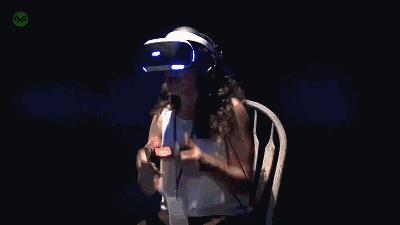 有一个非常有意思的现象,就是当一个人戴上VR设备之后,他会不自觉的做出各种各样的动作,可是从旁边的人来看的话,就会觉得非常奇怪,有那么夸张吗?有那么大的反应吗?但是对于体验者而言,PS VR能够给他带来的效果,就是他的肢体所变现出来的。