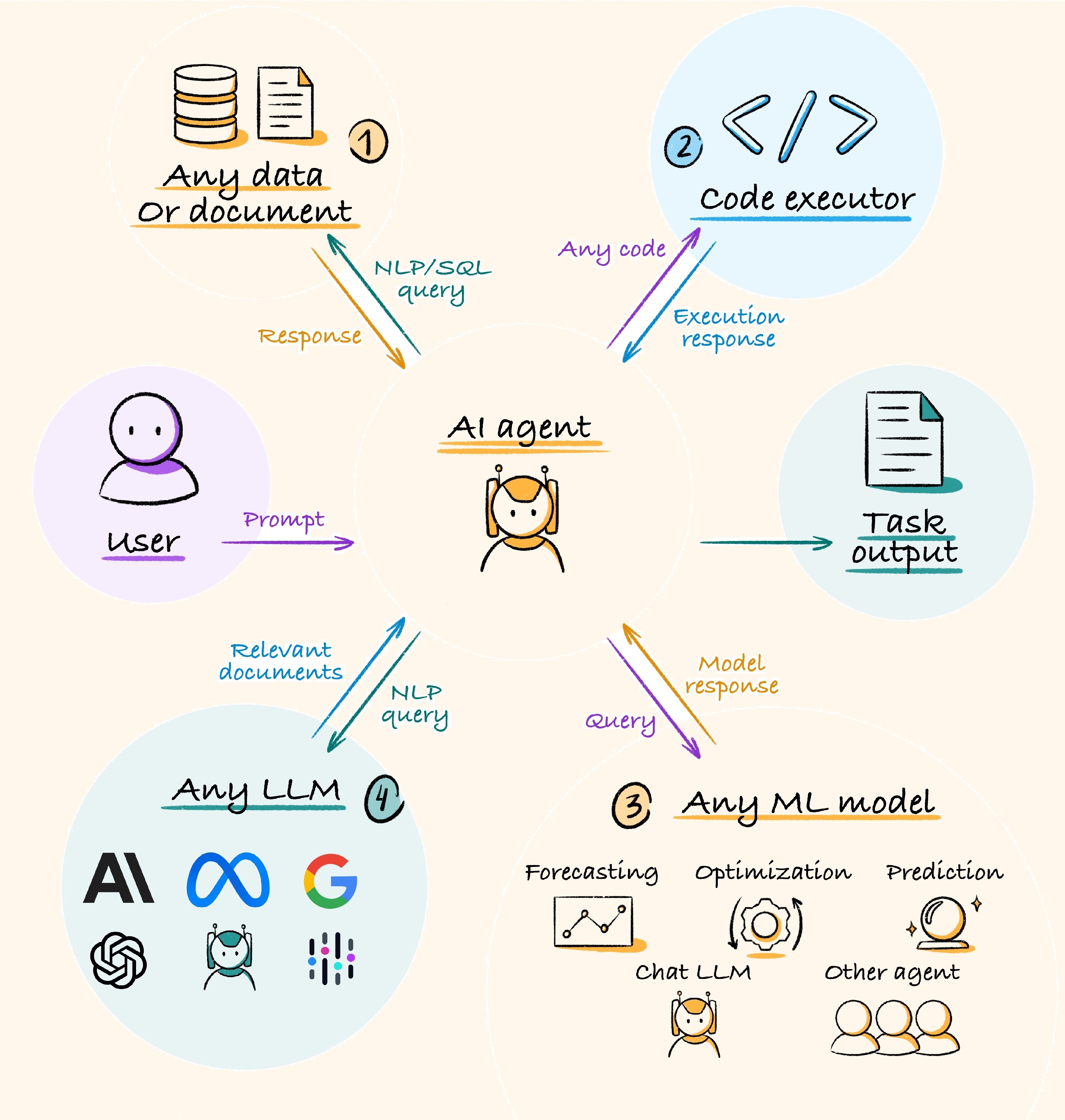 AI Agent的工作仅需给定一个目标,它就能够针对目标独立思考并做出行动,它会根据给定任务详细拆解出每一步的计划步骤,依靠来自外界的反馈和自主思考,自己给自己创建prompt,来实现目标。