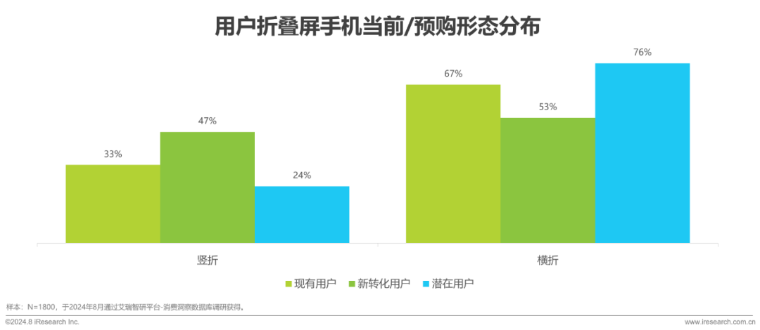 折叠屏手机无论从实际份额还是潜在消费者的未来购买意愿看,横折形态都是绝对主流,但竖折的时尚属性确实也吸引了更多新转化用户和观望者的关注。从形态选择的考虑要素看,横折屏手机得到青睐的核心原因仍是存量体验与增量体验的优势整合,即:折叠态外屏使用体验已与直板等同,外屏有效利用率更高;展开态能够更好发挥高沉浸感和多任务处理的大屏终端优势,更适合工作/学习/娱乐等场景使用。