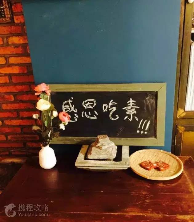 这家店与前面推荐的店铺不同,这是一家泰式风格的素食馆。一进店彷佛走进了佛堂,店里还放着轻柔的佛曲。店员会轻声提醒你:“我们这里是吃素的哦。”
