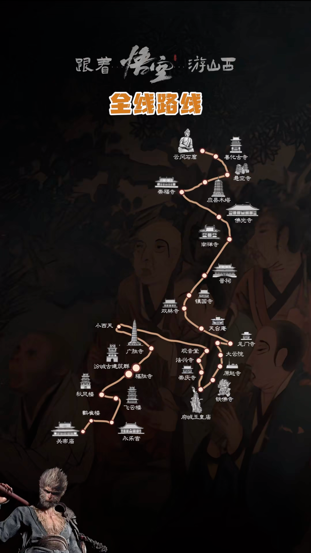 这也让山西狠狠赚了一波热度。据了解,《黑神话:悟空》在全国范围内选取了36个景点,其中山西省的取景地多达27处。