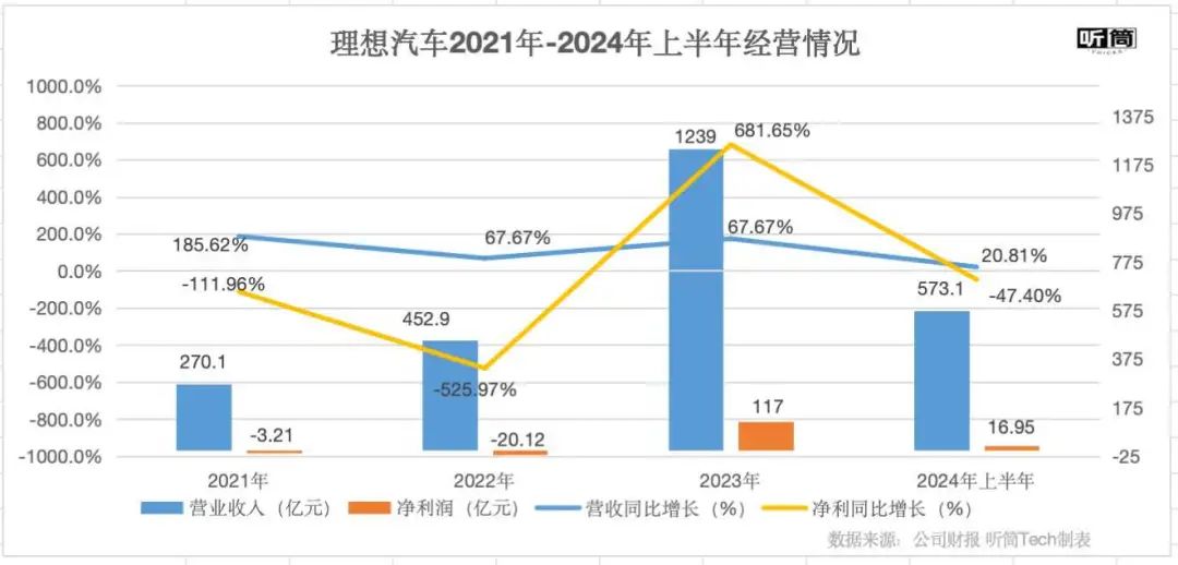 尽管营收仍在增长,但净利润将近腰斩,这与理想去年上半年的高增长形成了鲜明的对比。
