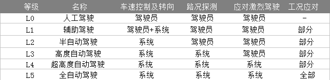 ▲自动驾驶等级划分