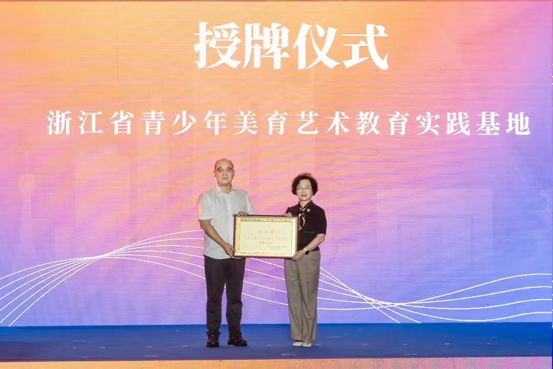 在开幕式上,浙江传媒学院原党委书记、浙江省青少年文化艺术教育协会专家顾问委员会主任杨立平为慈城古县城授予“浙江省青少年美育艺术教育实践基地”称号,宁波市江北开发投资集团有限公司董事长金晓接牌。