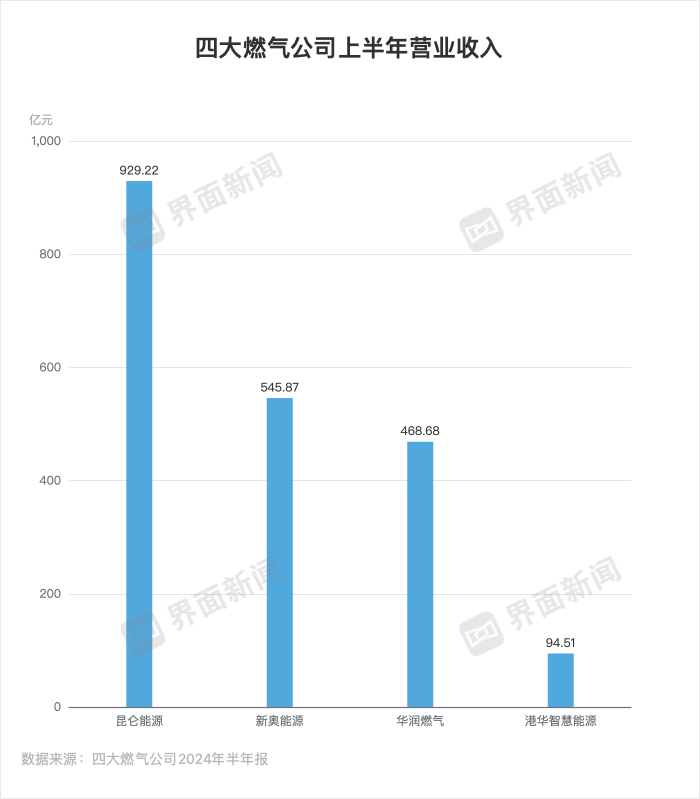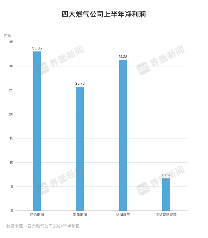 四大燃气巨头半年报陆续出炉。除了昆仑能源(00135.HK )外,其他三家燃气公司净利润均出现下滑。