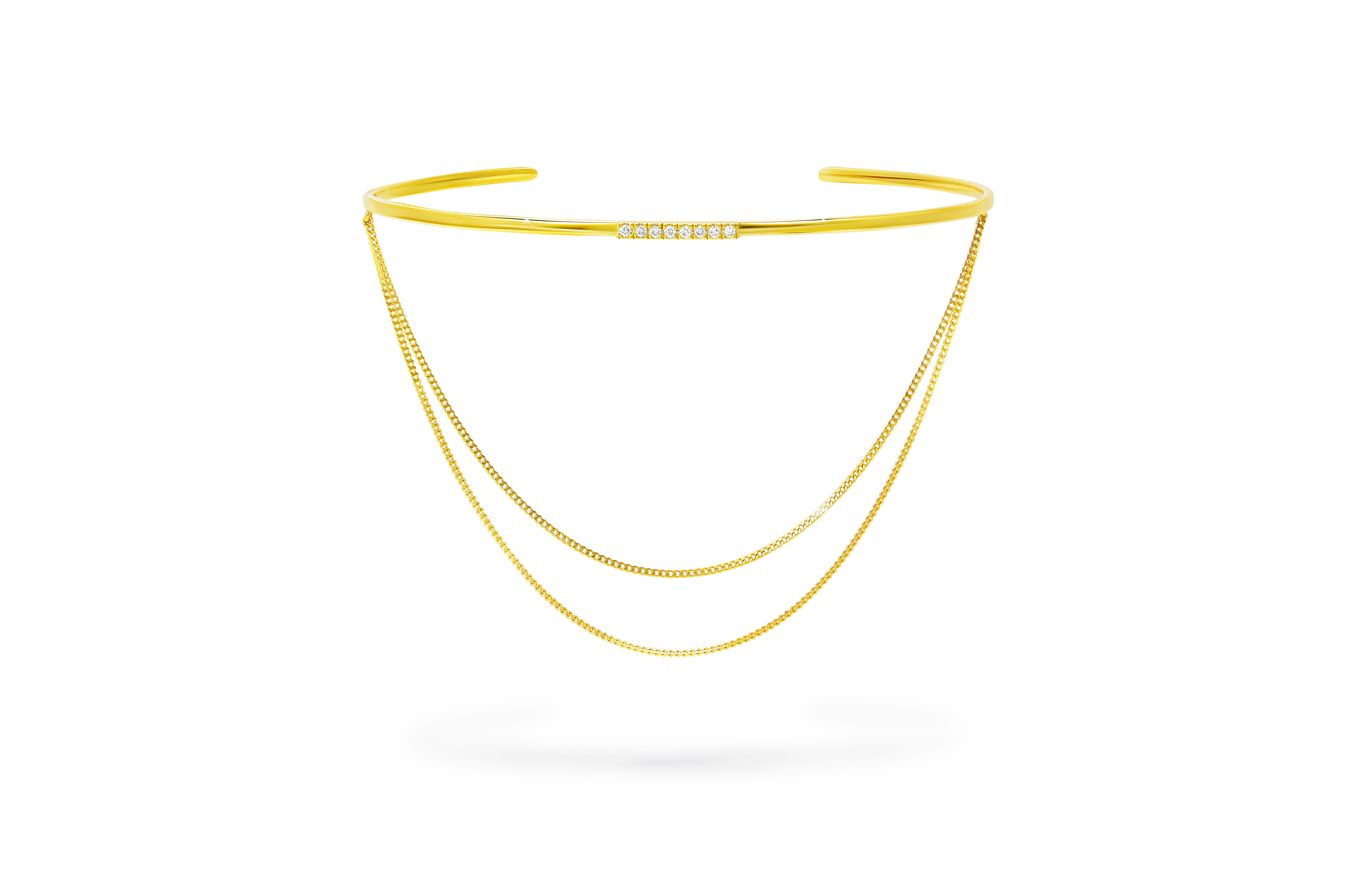 chandelier chain系列新作仍采用璀璨钻石与金质链条相结合的形式,并融入弧形曲线的新设计勾勒出简约的雅致格调。chandelier chain戒指与手镯别出心裁的垂坠金链呈现方式,彰显流动美的同时也为造型增添了几分层次感。