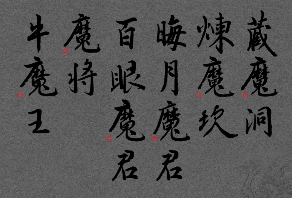 汉仪黑神话字体在设计中,更多的保留了书写细节,其中有大量异体字形,更具书写韵味。对于因书写习惯、旧字形、增减笔画等原因而出现的异体字形,在有据可依且字形不产生混淆的前提下,最大程度地予以保留。