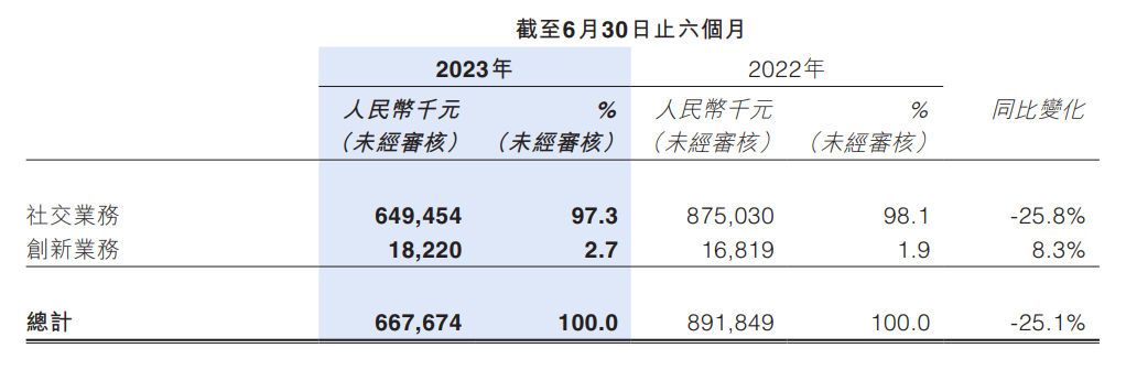 相比之下,2023年上半年,赤子城收入成本对比2022年,则是在社交业务方面成本下降了25.8%,创新业务成本增长了8.3%。
