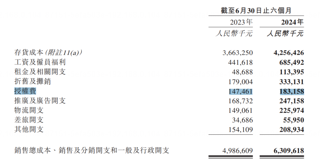 不过,得益于集团规模、战略侧重,名创优品比起其他竞品企业,在进行IP授权合作时,也确实更容易拿下国际顶流IP。据悉,名创优品已与迪士尼、三丽鸥、宝可梦、侏罗纪、芭比等全球近100个知名IP合作,已然在消费者心里树立起了“联名狂魔”的形象。当然,名创优品也为此耗资巨大,半年报数据显示,2024年上半年集团的授权费支出高达1.83亿元,较去年同期增长了24%。