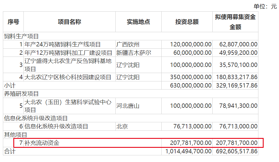 在募资额一缩再缩之后,大北农仍决定拿出2.08亿元用于补充流动资金。